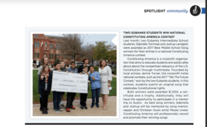 As best song winners, Tommasi and Landgraf receive a trip to Austin to visit the State Capitol. They also will be mentored by rapper and Christian music artist Moses Uvere, and Constituting America will professionally record their songs and promote them.