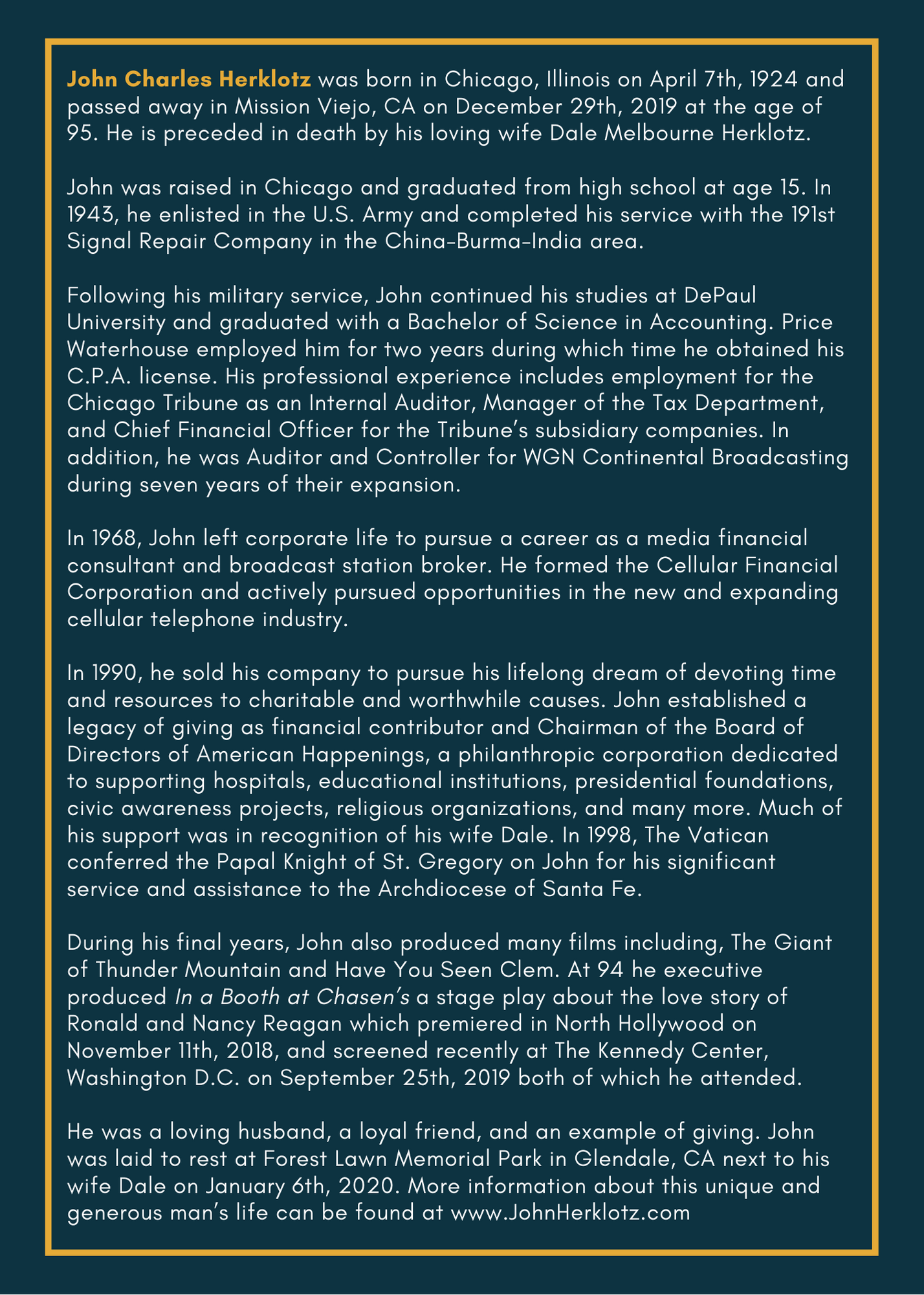 Constituting America thanks Mrs. Cindy Brinker Simmons for her generous contribution in honor of the memory of Mr. John Herklotz. Mr. Herklotz was a generous supporter of Constituting America. He not only helped fund our Constitution Education Programs, but also gave Constituting America many opportunities to promote our programs to his wide network through featuring our organization in his “In A Booth At Chasens” Playbill and other opportunities. Constituting America is a proud partner of Mr. Herklotz’s initiative America’s Mock Election. Click Here to view Mr. Herklotz’s website to learn more about this great American Patriot.